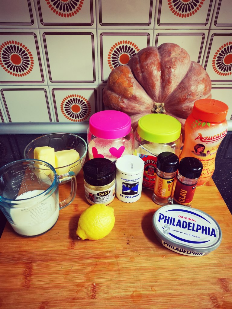 • 250 gr. aprox de puré de calabaza (antes de hervir son unos 450 gr.).
