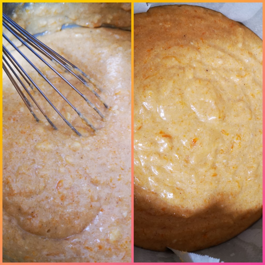 Aquí tenéis el momento de mezclar todos los ingredientes y el momento de pasarlo al bol para meter la masa en el horno.