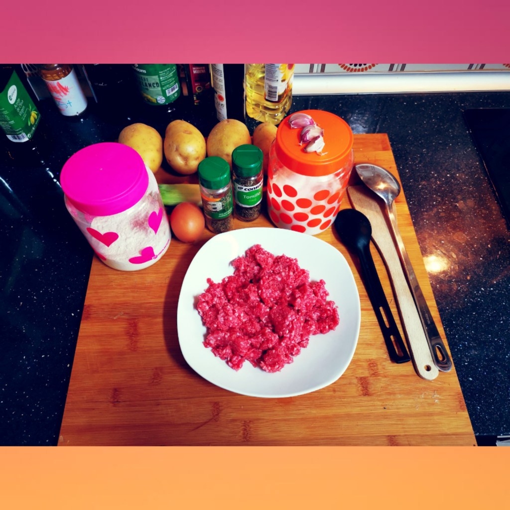 Preparación para la pelota: amasar la carne picada. Añadir el huevo y mezclar. Cuando esté todo bien mezclado echar el ajo, perejil y la sal. Yo normalmente rallo el ajo, así no te encuentras tropezones, pero le da un gusto exquisito. Por último, si tienes una rebanada de pan, que has tenido en leche durante un rato para que se ablande, la añades a la mezcla y remueves para que se quede todo bien compacto y esparcido. Como he dicho anteriormente, si no tienes pan, puedes usar pan rallado, usa un puñado, sin pasarte, queremos que quede compacto para que la pelota, en la olla no se rompa, pero que no quede un mazacote, porque luego estará dura. Le das forma de pelota (puedes hacer una grande, o puedes hacer pelotas pequeñas, tipo albóndigas, todo depende de cómo la quieras servir. Yo normalmente la saco con la patata y nos la comemos con las verduras y la carne, antes de tomar la sopa, pero si haces pelotas pequeñas, las puedes poner en la sopa con la pasta, porque también está deliciosa).