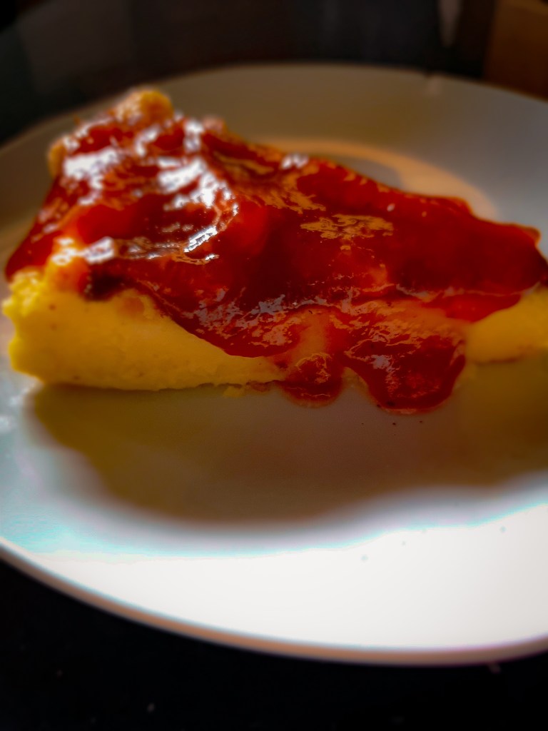 Así que una vez fuera del horno, dejar reposar en el molde hasta que enfríe. Después ya podréis desmoldar y empezar a disfrutar. Para los amantes de las mermeladas, un poquito por encima de la tarta, le da un toque muy especial.