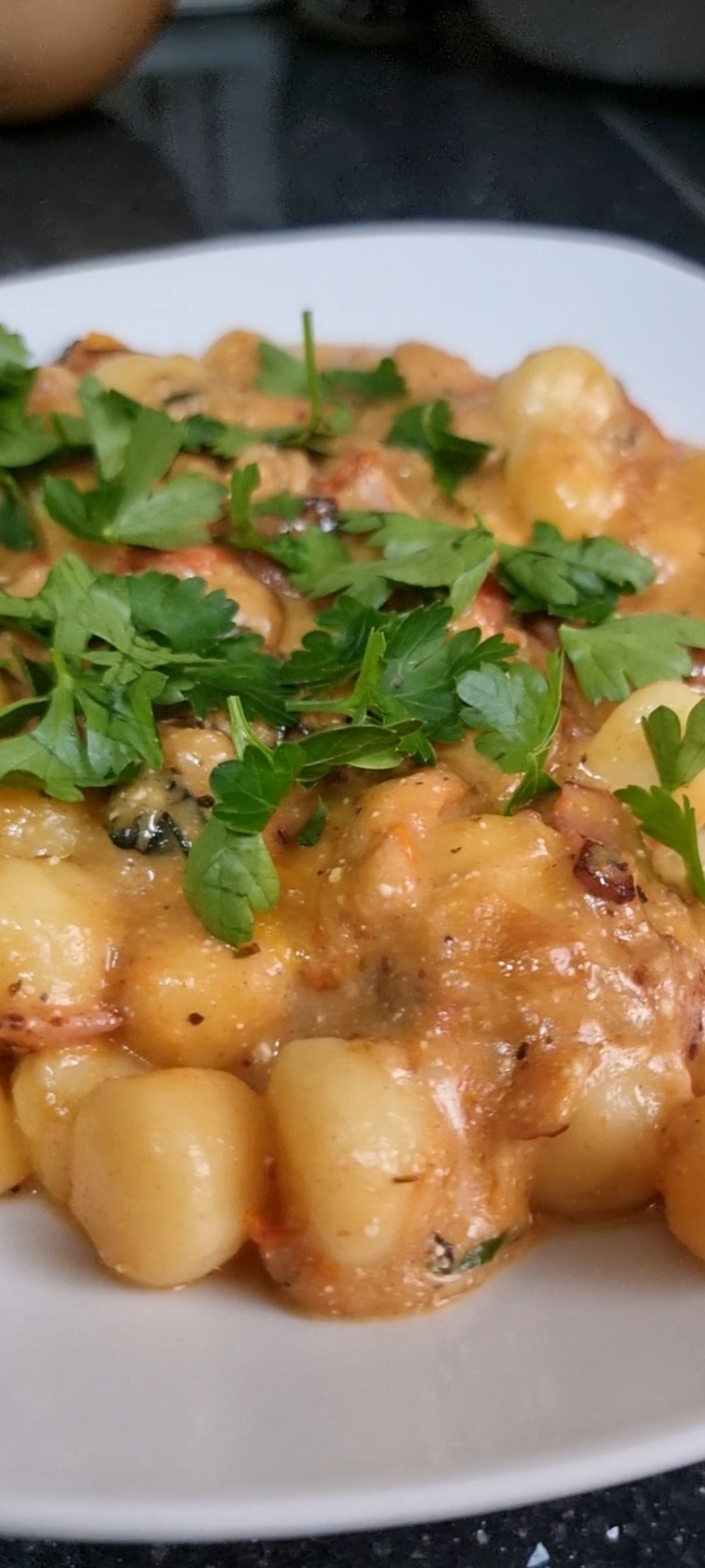 Gnocchi con Tomates Cherry, Quesos y Bacon